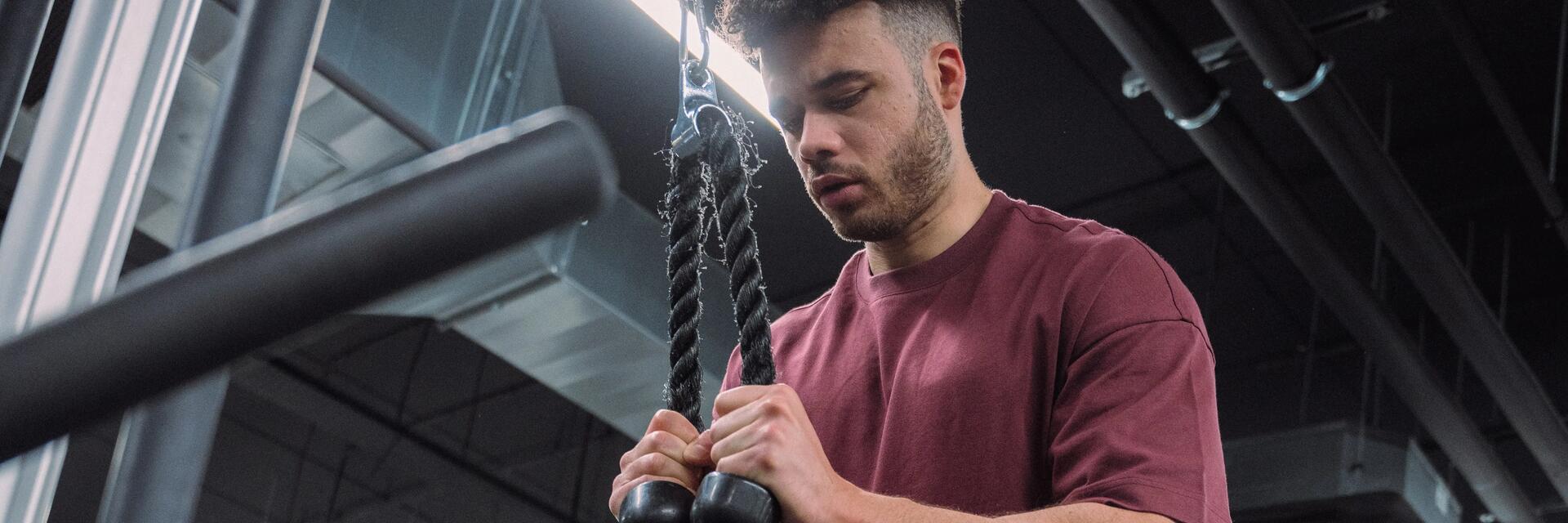 Para hacerlo tendrás que colocar una cuerda en la polea alta y ajustar el peso a un nivel moderado que te permita controlar el movimiento sin ningún tipo de impulso. Ahora, sujeta las asas con agarre neutro, es decir, tus palmas enfrentadas, y da un paso atrás para así mantener la cuerda tersa. Desde esta posición estable y con el core activado, tira de la cuerda hacia tu cara, abriendo los codos hacia cada uno de los lados como si quisieras llevar tus manos hacia las orejas.